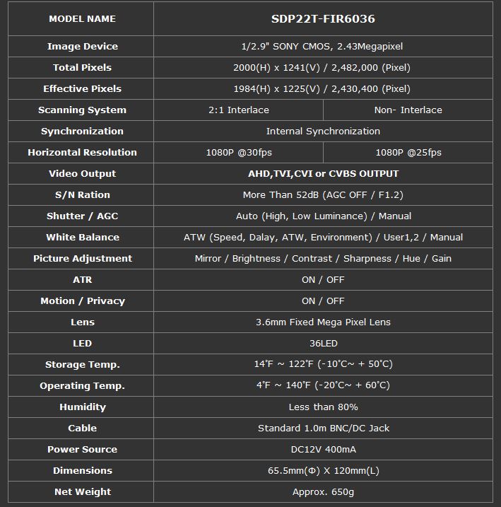 • 1/2.9" SONY CMOS 2.48M Sensor